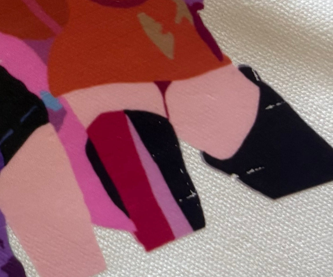 ce tote bag porte un léger défaut sur les bottes de mira